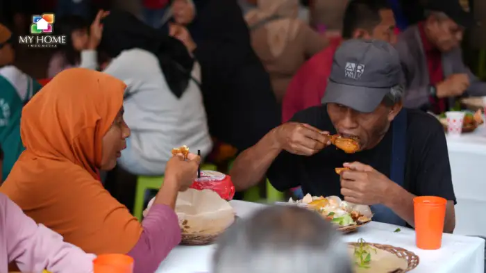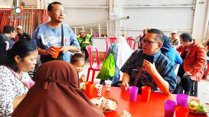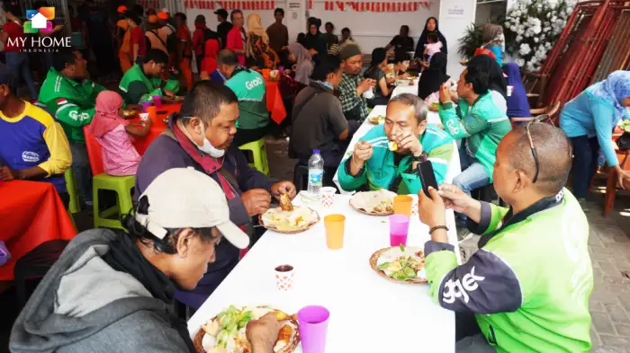 Terlihat masyarakat yang mendatangi dan mengambil bagian dari kegiatan menyambut antusias kegiatan yang diadakan oleh My Home Jakarta. Meja yang disediakan terlihat dipenuhi warga dan driver. Wajah cerah dan penuh senyuman para peserta menyantap makan siang yang sudah disediakan panitia.